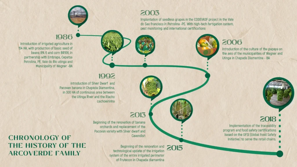 We are a family owned and operated business. We were pioneers in the production of irrigated bananas in the semi-arid region of Bahia. Thus making constant investments in consultancy, research, structure and training of labor, which led to the consolidation and diffusion of cutting-edge techniques and the consequent propagation of cultures in the region, directly contributing to the economic development of the municipalities of Wagner and Utinga in Bahia.